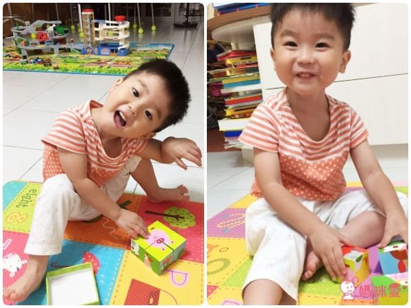 這款建議適齡適是 18 m 以上。果然對 smile 姐姐來說非常容易,姐姐一下子就完成了XD 弟弟 star 需要花的時間就比較多了,小寶寶可以挑戰看看喔~