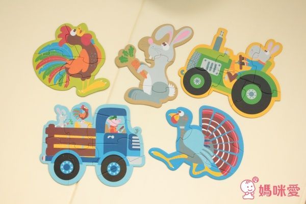 這系列是比較基礎、好上手的漸進式拼圖,每組的片數各是 3、4、5、6 及 8 片不等,寶寶可以從 3 片拼圖開始練習,再慢慢進階多一點的片數,增加小手協調、與自信心!