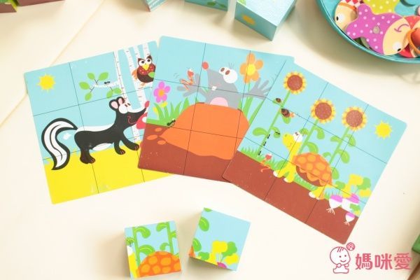 這次開團的 9 宮格方塊拼圖,是森林動物的圖案,他有附完成圖可以對照練習喔!