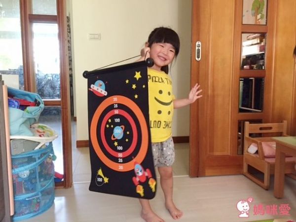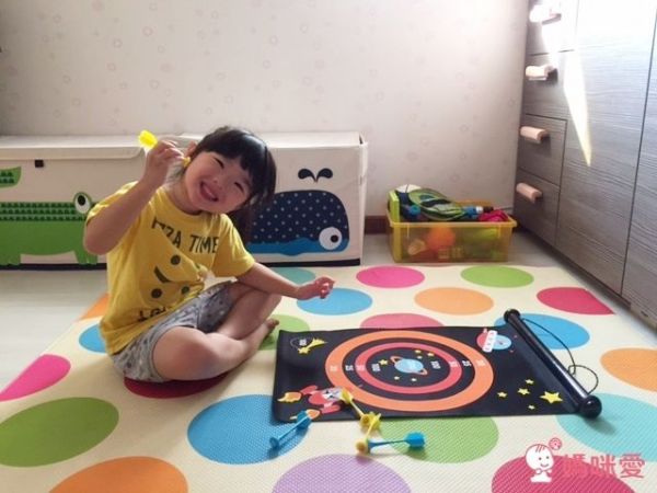 這款遊戲雖然遊戲年齡是建議五歲以上,但 S 家的兩隻小不點姐弟試射兩次飛鏢就能輕鬆上靶了,對於訓練手部協調性與手眼協調性相當有幫助呢!