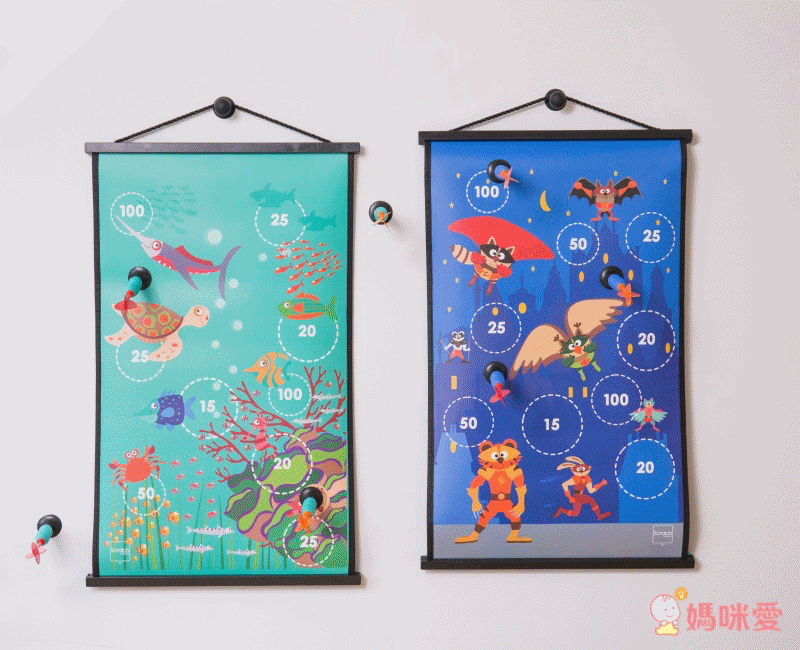 磁性飛鏢另外還有怪獸家族、馬戲團、飛龍騎士等款式,每一款的得分圈圈配置都不一樣,家有雙寶還可以輪流玩、互相挑戰唷!