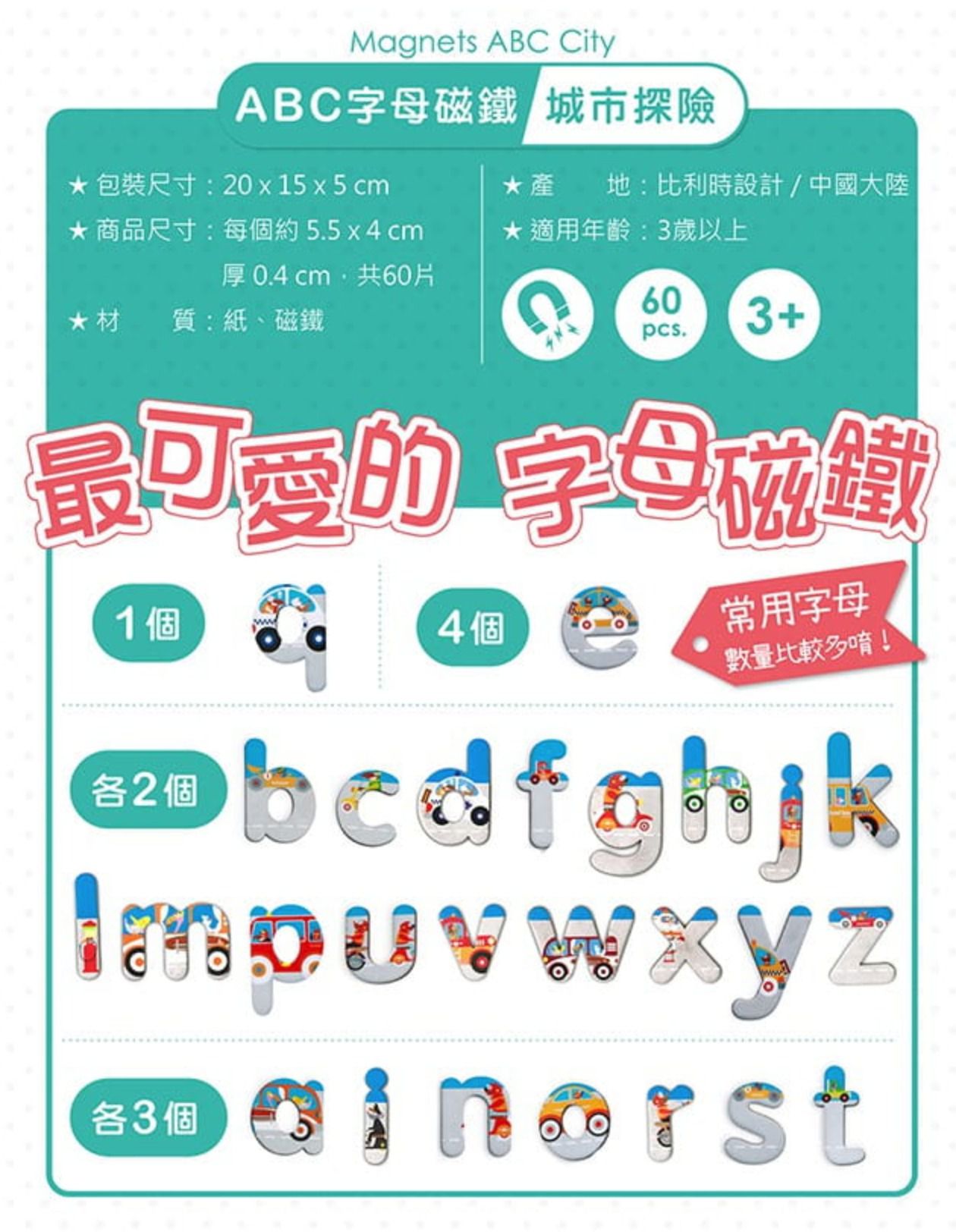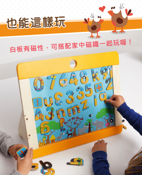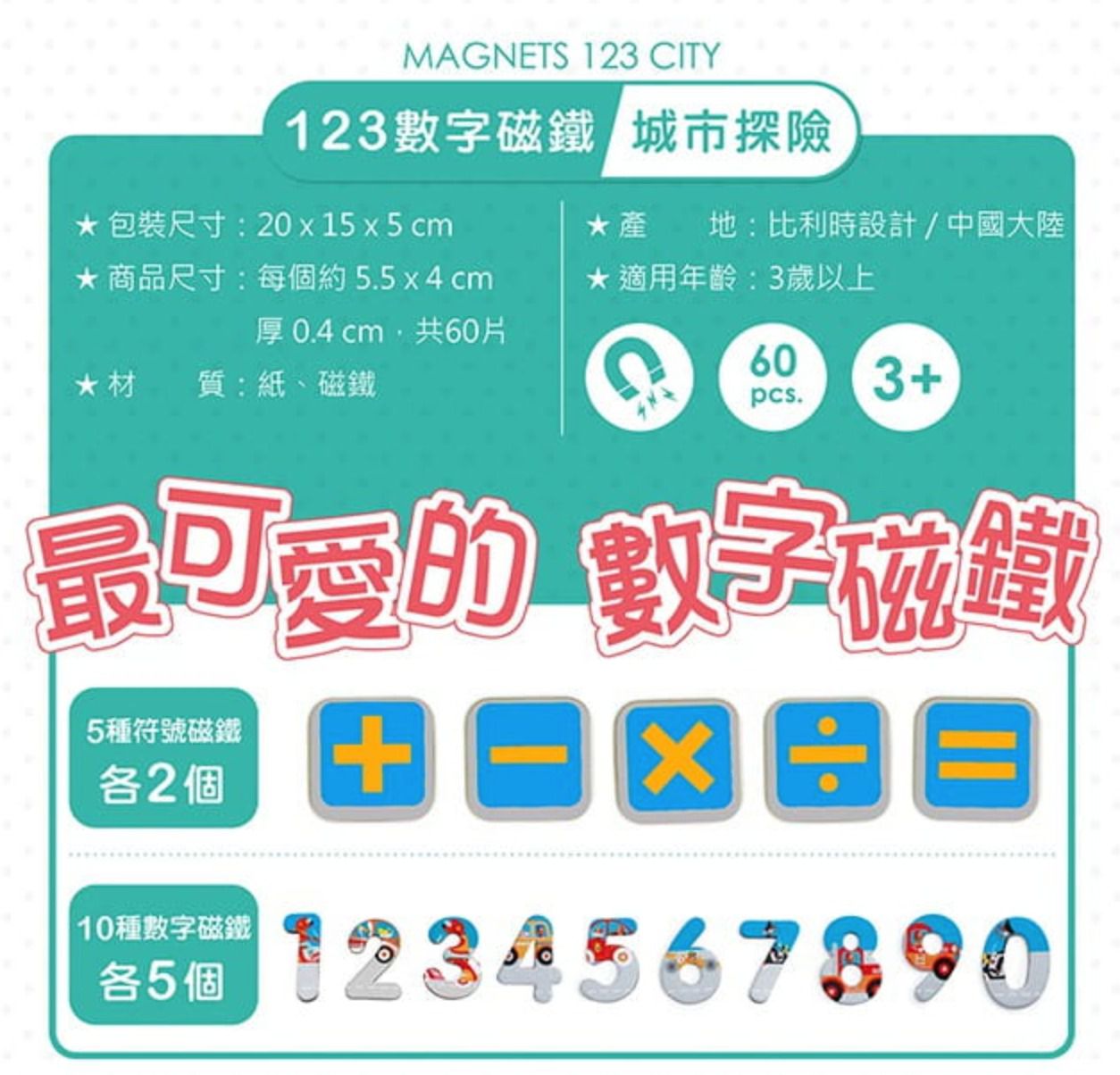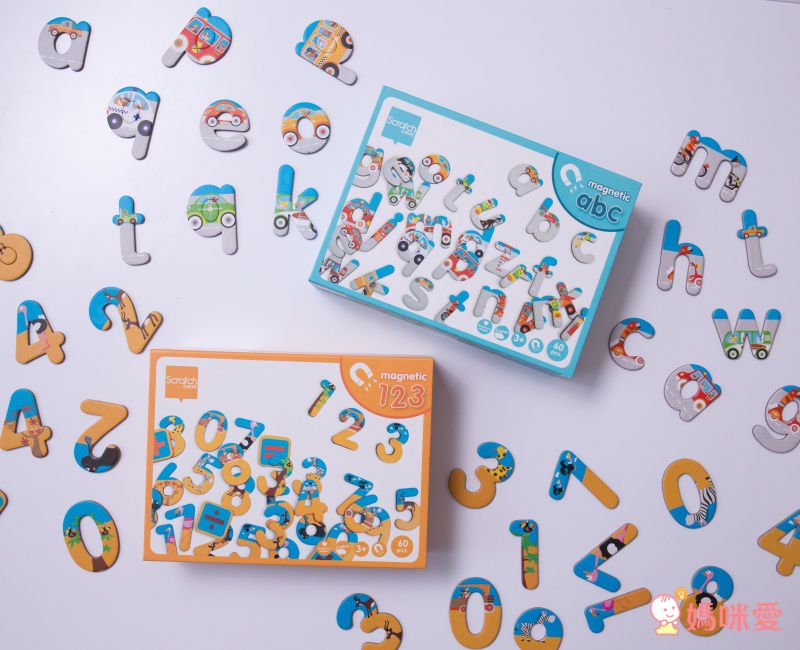 這一系列把情境式的圖案融入磁鐵中,增添小朋友在學習時的趣味,總共分成英文字母和數字兩種。
