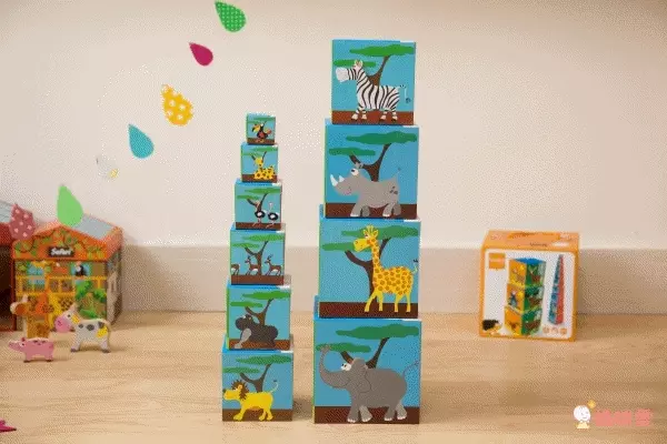 動物王國上有犀牛、斑馬、長頸鹿、刺蝟、貓頭鷹......等卡哇伊圖案,光是其中二面就介紹了 20 種動物呢!另一面紅色面則畫著 1~10 數字即對應動物數量,寶貝可以練習看看從小排到大喔。這款有 10 塊正方體塊數很多,所以組起來也非常高呀!