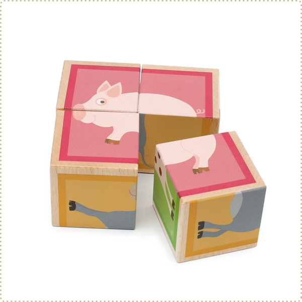 S 媽用之前入手的農場舊款來示範,因為是立方體,所以共有 6 種圖案可以拼組,也能訓練孩子的邏輯能力喔。