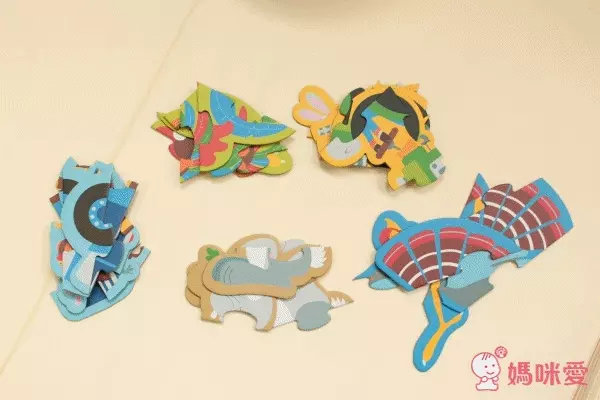 每份小拼圖背面有不同圖案設計,寶寶可以先練習分類,一方面也能當拼圖的提示