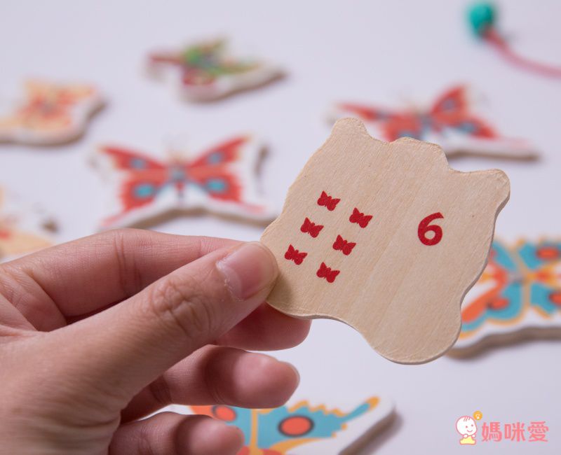 每一小塊圖案的反面還有數字與點數,可以讓小朋友練習點數加總計分