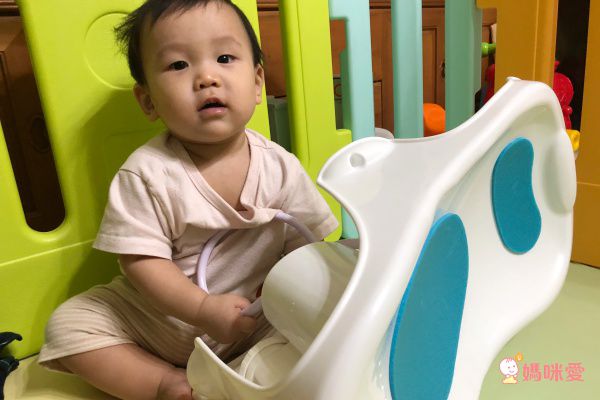 便便看到天鵝澡盆像看到新玩具一個樣,可以看出坐盆對剛滿一歲的便便而言,也不會太小