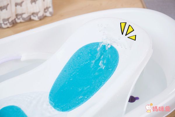 澡盆底部有變色水塞,水溫到達42度時會變成紫色,讓媽咪輕鬆掌握溫度~