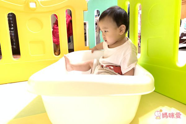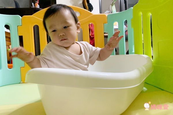 天鵝澡盆除了適合剛出生的小嬰兒外,對我們來說也很適合剛滿一歲的超級好動寶寶,而且外盆真的非常的大,適合拿來玩遊戲,洗完澡後便便又開發了新的澡盆玩法,就是當成小船在划!真的是太有創意了!