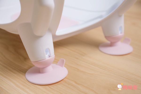 強力的矽膠吸盤能吸附在水槽的表面,幫助洗屁架固定(小提醒:由於每個水槽形狀、材質不同,吸盤僅為輔助站立的功能,媽咪還是要用手扶著寶寶的身體,以策安全唷!)