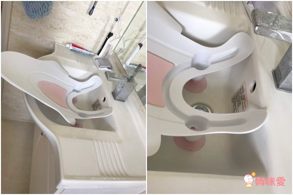 洗屁架背後有四檔卡槽,媽咪可以依照洗手台的高度做調整唷:)