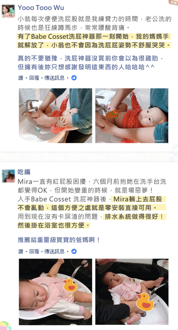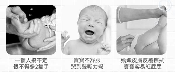 洗屁架真的是一個棒的發明,讓媽媽可以不用抱著寶寶洗屁屁。因為抱著寶寶洗屁屁要擔心會不會撞到頭,以及寶寶亂動掉下去的危險,所以我非常喜歡這款商品。有時候真的恨不得多出兩隻手來幫忙,加上寶寶不舒服時的哭聲,真的會讓媽咪很焦慮啊! (´゚д゚`) 加上反覆擦屁屁還會容易造成紅屁股,所以真的要有一個洗屁架!