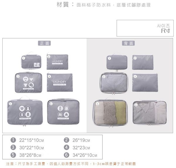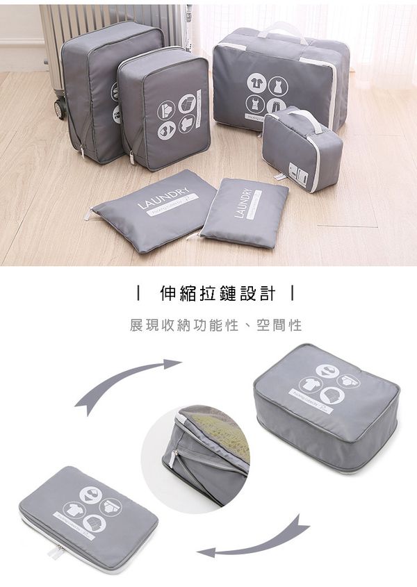 這款雖然也是六件組,不過實際的收納袋內容尺寸以及功能還是有些出入,其中有幾個收納袋還是有伸縮拉鏈設計的,可以加大或縮小空間,媽咪可以依照需求下單喲~