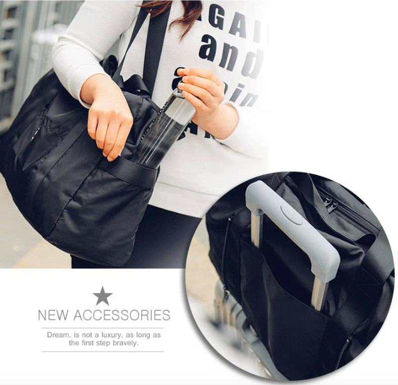 可肩背可手提,還可以直接扣上行李箱拉桿,不用自己扛讓行李箱載著他!