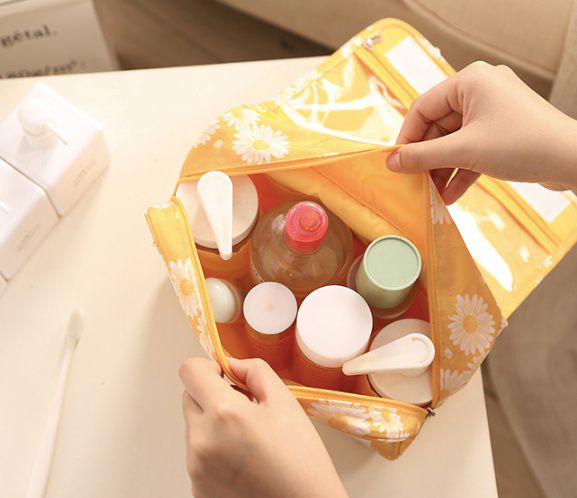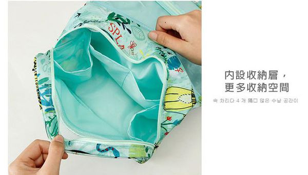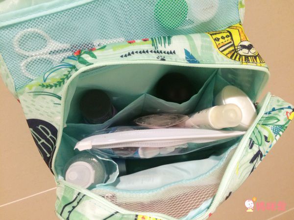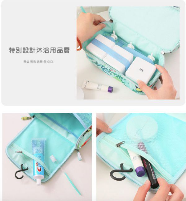 拉鍊上開式的設計可以容納非常多的盥洗以及沐浴用品