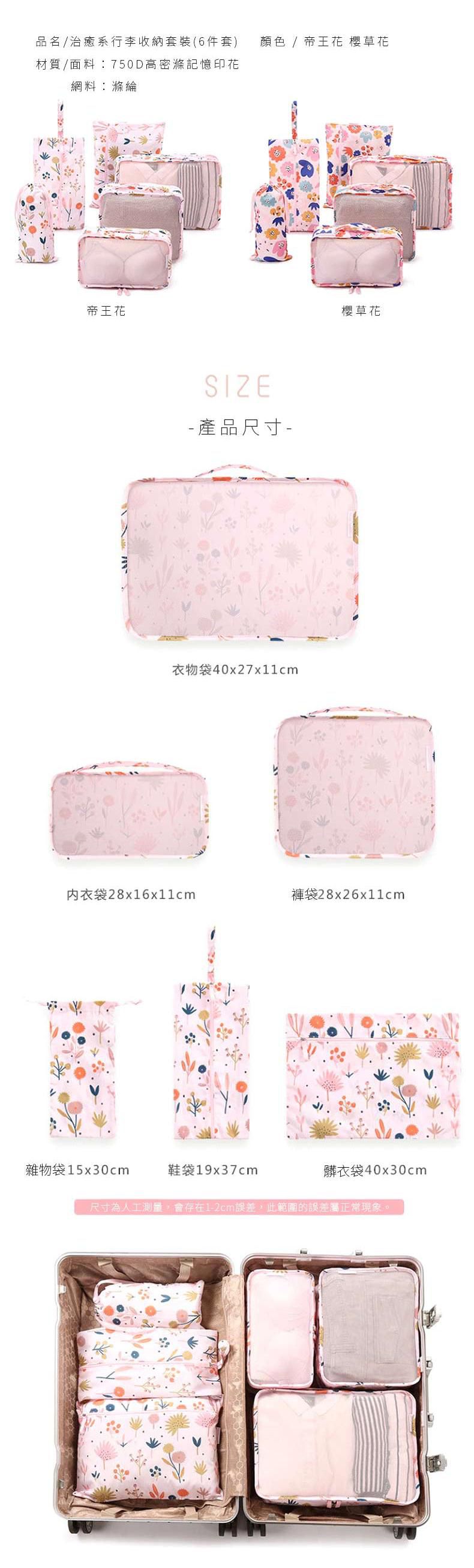 喜歡粉嫩色系的媽咪絕對不要錯過印花系列了~粉粉嫩嫩的底色加上可愛的小花,讓人難以抗拒,尺寸也很齊全,旅行會帶上的東西一次都能裝!