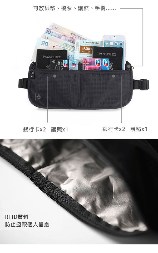 紙幣、機票、護照、零錢、手機通通都可以放進去啦~