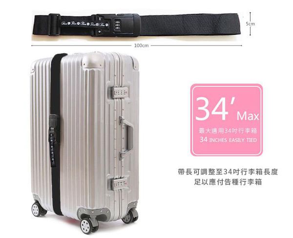 這款行李束帶超好用的!最大可以從18吋的行李箱用到34吋,不僅可以更穩固行李箱,還能增加辨識度唷~