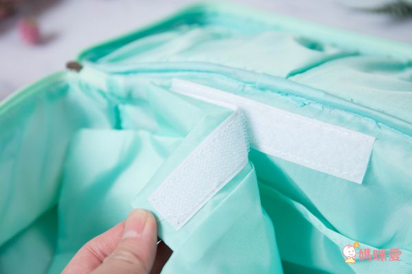 中間還有隔層小袋,用來放一些生理用品很方便,還有魔鬼氈設計可以單獨取下放在隨身包裏呢~