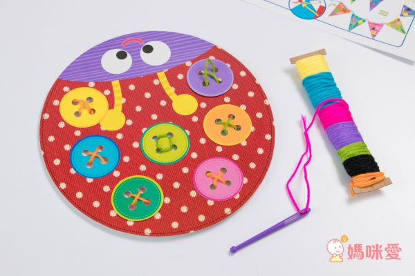 穿線可以訓練幼兒手眼協調能力,裡面有穿線棒、材料包和說明書、包含 8 個穿線板,共可作 8 個穿線作品!