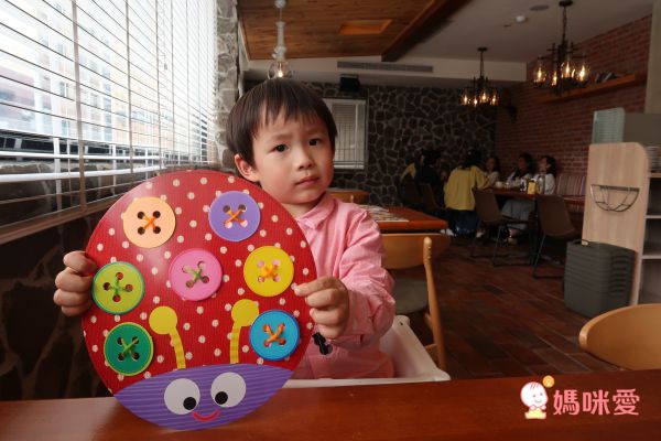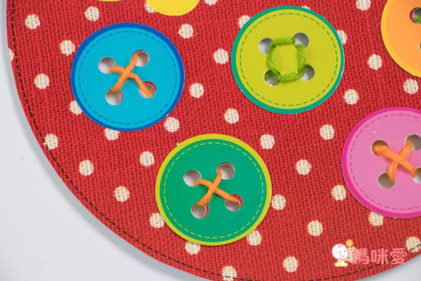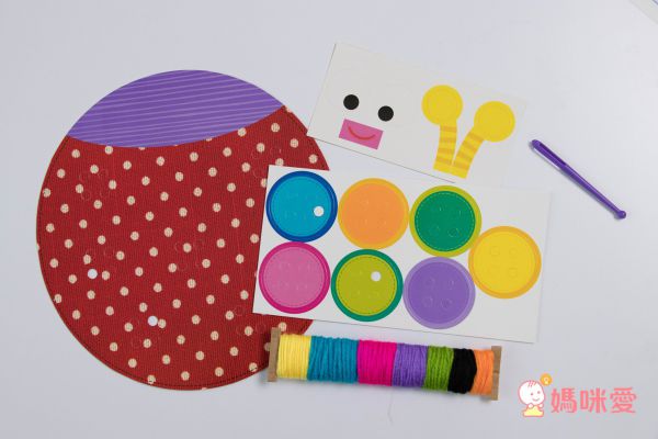 縫扣子不太需要看說明書,每個洞都縫到就對了。而且我和寰寰在做美國 ALEX 幼兒美勞手作系列時,旁邊有兩位小妹妹一直跑過來,好像是對寰寰玩的美勞很有興趣。所以如果寶貝年紀比較小,媽媽在旁輔助應該也是能玩喔!