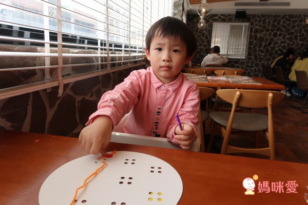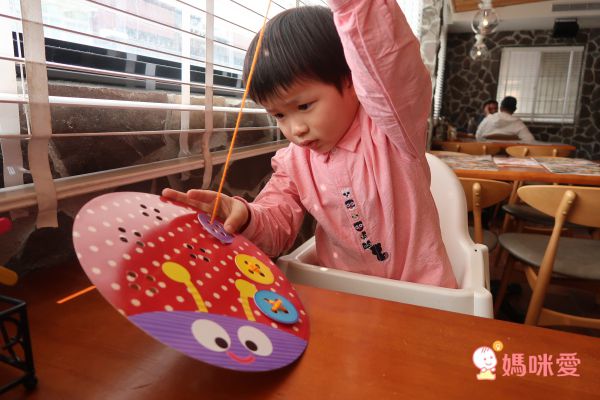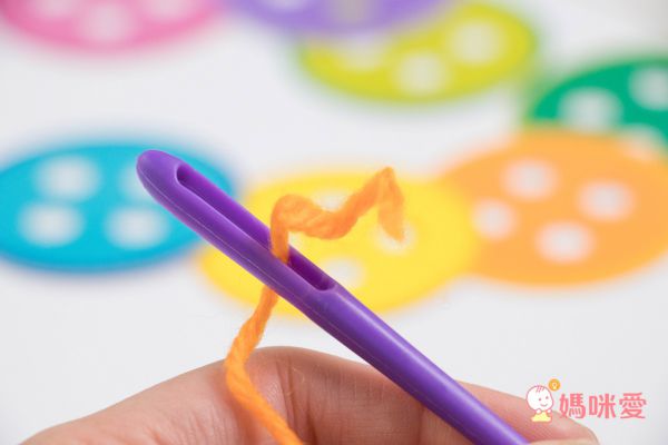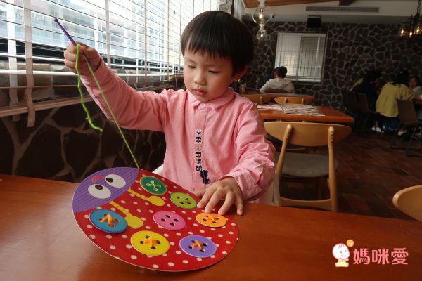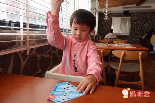 認真地神情,線掉了再穿線,不僅訓練小肌肉更訓練耐心、專注度。