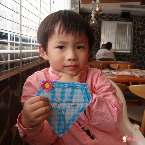 本來想說寰寰曾經念過蒙特梭利的幼兒園,這個應該是對他來說簡簡單單小菜一碟,所以他選鑽石說要做來送給我時,我就沒有拿說明書給他也沒有教他讓他自己發揮...