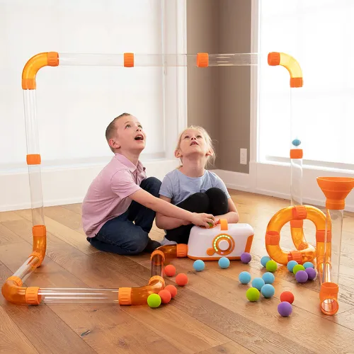 也不用擔心球會弄丟喔~每個球中間都以短繩相連,牢固之餘也能讓孩子練習「拿起」和「放下」,這個對大人來說非常簡單的動作,卻能紮實的鍛鍊小手肌肉使用呢!