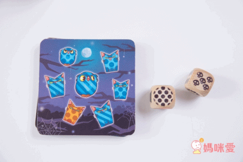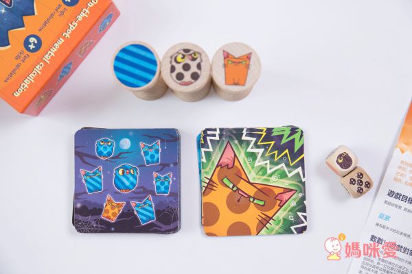 重點在於比較骰子/條件旗與卡片上圖騰是否相同,例如:分為點點、條紋、藍色、橘色,另外動物也是條件之一喔。如果孩子年紀較小,只是想先建立數理邏輯概念,可以由貓與貓頭鷹入手,這是一款「練習算數、記憶花樣、強迫孩子專心觀察、訓練邏輯思考、速讀速記」的數學桌遊。