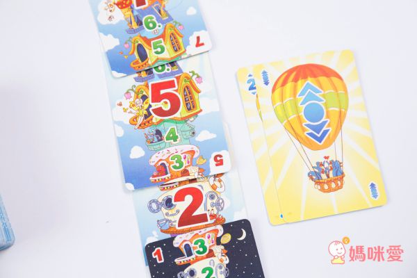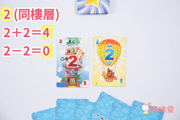 出牌規則是運用氣球 vs. 樓層卡相加減:(若減後為負數,以 0 表示即可)