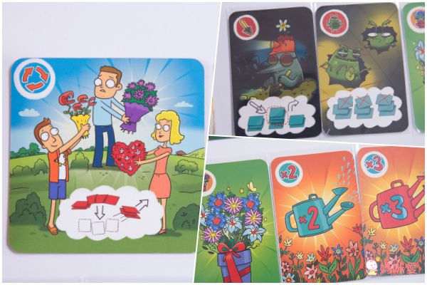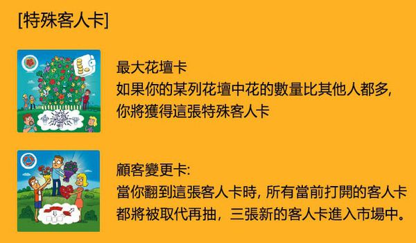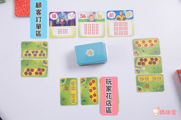 玩家擔任花店,前方是客人的訂單,每次都會有 3 位客人來買花,而我們則要努力種花,相加花牌數字以滿足客人的訂單。