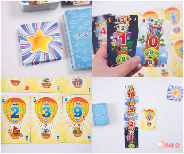 就像加減版的 UNO 玩法,玩家也可以思考,擺放氣球卡來改變遊戲條件~讓自己更快獲勝喔!如果有符合條件的氣球卡很多,則可一直出牌直到沒牌為止喔(一次出一大把牌超得意啊!)最先打完手中的牌即可得到一張星星卡,最快集到 5 張星星卡的玩家即勝利。