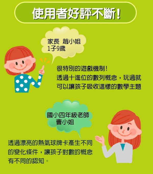 遊戲中利用不斷加法減法,達到反覆練習的目的,對數字的靈敏度提高許多,也可以訓練孩子的反應力喔。緊張刺激的成分在於,思考條件順序該怎麼丟,才能一次脫手~拿星星!