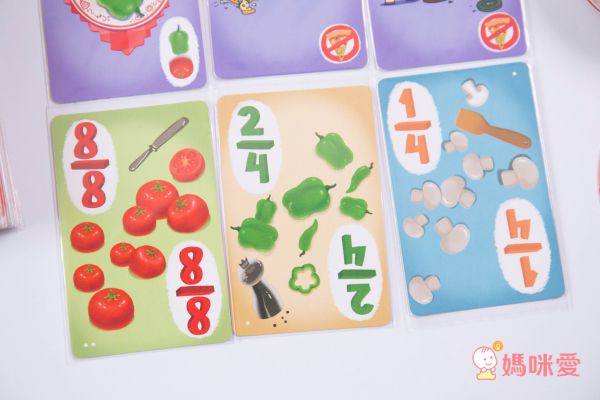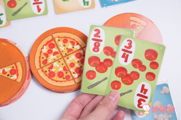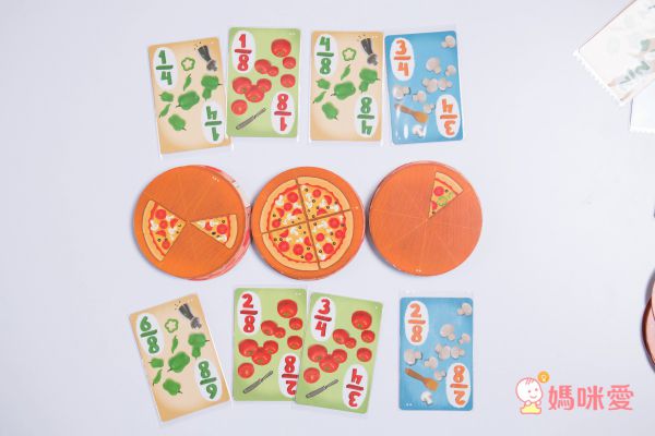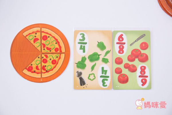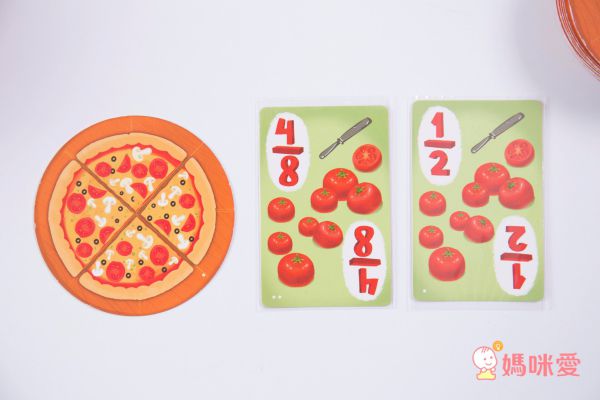 一開始小孩的思考方式可能是:少幾個、補幾個,玩久了就知道幾分之幾,一半就是 4/8~~完全是食物(實務)跟理論結合的遊戲啊✌