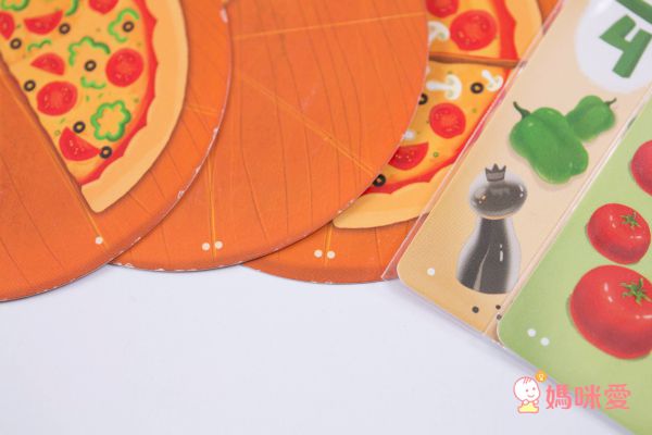 拿牌後同時桌面與自己的卡牌,需再補足四張,玩家輪流玩,直到桌上卡牌完畢為止,獲得最多的人為勝利者。這種規則下,可以提醒孩子盡量拿多的,湊越多越好!因為最後計分是以「完整 Pizza 數量」為基準喔。