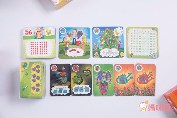 搭配特殊卡牌:害蟲卡、攻擊鼴鼠卡、顧客更換卡(湊不到訂單時~很需要換一批新客啊!)練習乘法數學的同時,也能帶入家家酒,更吸引孩子投入喔!