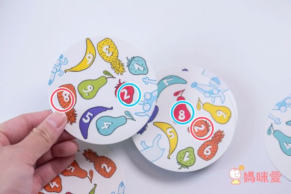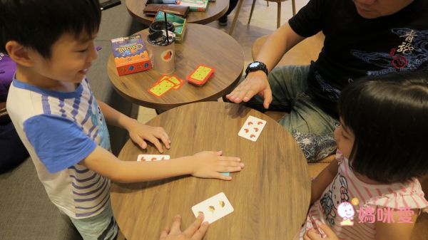 若是小小孩第一次玩桌遊,可以轉換簡單玩法,找出相同數字即可,這種玩法大小寶可以一起參與喔。因為重點是 “快速”,有時候小孩反應還比我快呢!