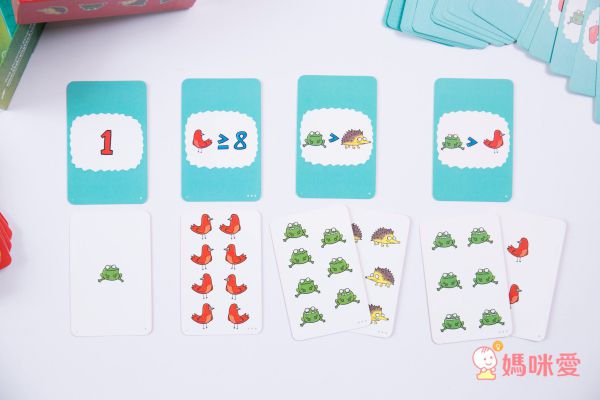 簡單可愛的動物圖卡+不複雜的遊戲規則,讓孩子一目了然,大於小於不會再左右分不清楚,真的一玩就學會了啊!還可以增加懲罰機制......搶錯的人要把自己的牌分大家一人一張,因為結算得分時是牌越多的人獲勝,所以一拍錯就大失血囉~