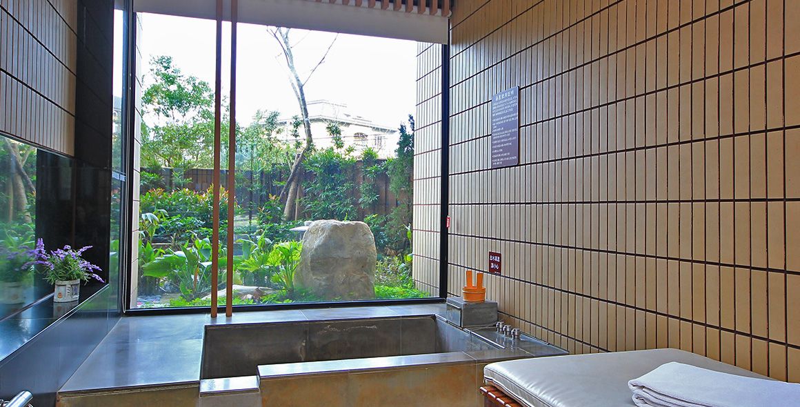 舒緩坐臥在溫暖湯泉中,毫無束縛地讓柔軟的波浪將身心的疲憊與壓力全部帶走,如此的舒服慵懶,是無人能抵擋的泡湯魅力。原石砌製的寬敞浴池,搭配日式庭院造景,使您舒展疲憊的身心之際感到分外享受。獨立湯屋的優雅空間,是您與親密愛人、家人分享歡樂時光的最佳選擇,在隱密的泡湯空間中,讓溫暖滑順的泉水,為您的感情加溫。