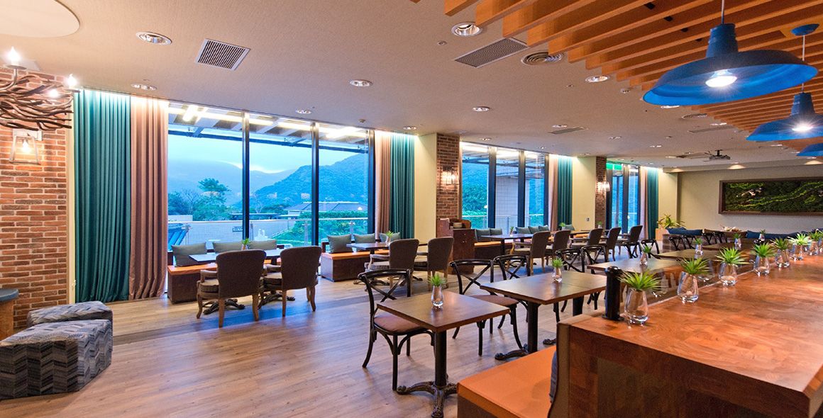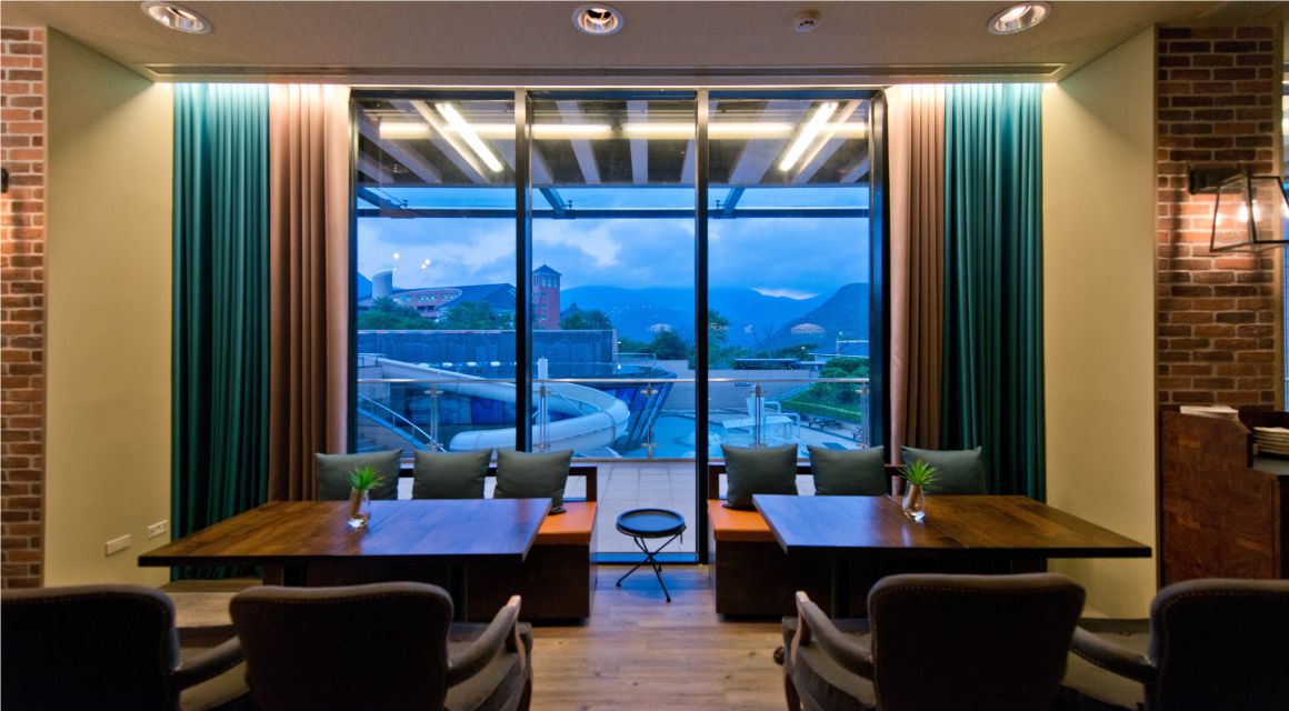 分為室內與室外的親水主題館,運用陽明山的恆溫山泉能量水打造出的多功能空間,眼前映入的是陽明山的秀麗景緻,室內區運用玻璃帷幕的設計,巧妙的將陽明山變換無窮的自然光線導入室內,晨間感受陽明山的活力、夜晚沉浸於靜謐的月色中,洗滌身、心、靈的疲憊。