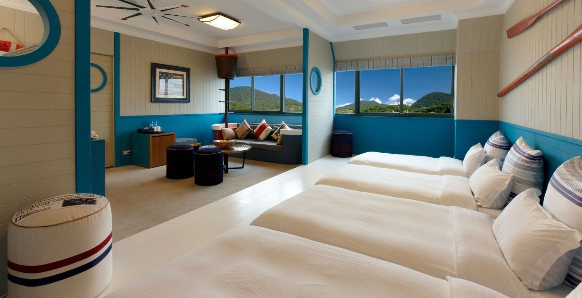 這間就是我們這次入住的是歐風館草山,部分房型是樂高設計,這次就很幸運被安排住進樂高房型(房數有限,依現場為主),泱泱和靚靚說回家也要用家裡的樂高試著組裝玩玩看,看能不能也能拚出數字來(ノ≧∀≦)ノ