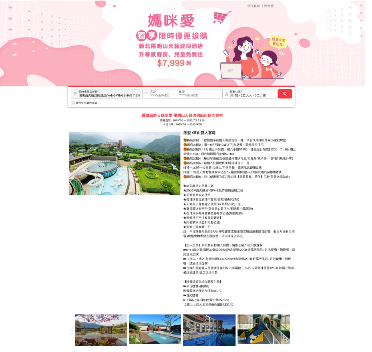 1. 點擊連至雄獅旅遊網,選擇欲入住之日期與人數、點選搜尋按鈕