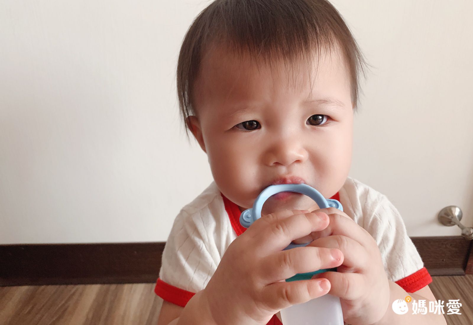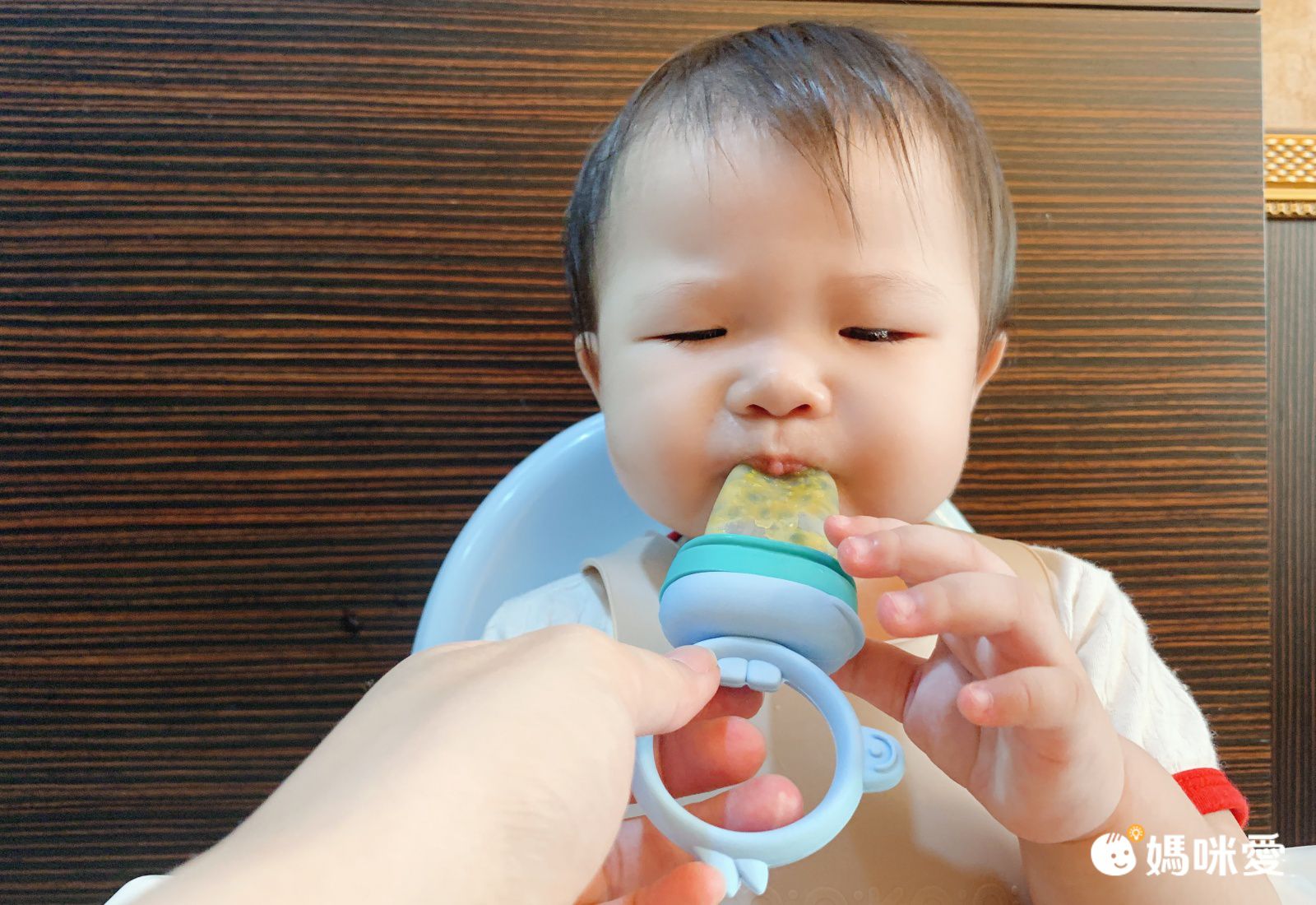 之前媽咪都一定都是直接餵喬喬吃水果,因為讓喬喬自己吃,最後都會變成徒手拿,整隻手甚至身體都用到都髒兮兮,尤其是容易染色的水果我都超怕,但有了咬咬樂,就可以把水分多的水果切小塊裝在裡面,讓喬喬自己拿在手上放入口中,再也不用擔心火龍果這種水果的沾染囉