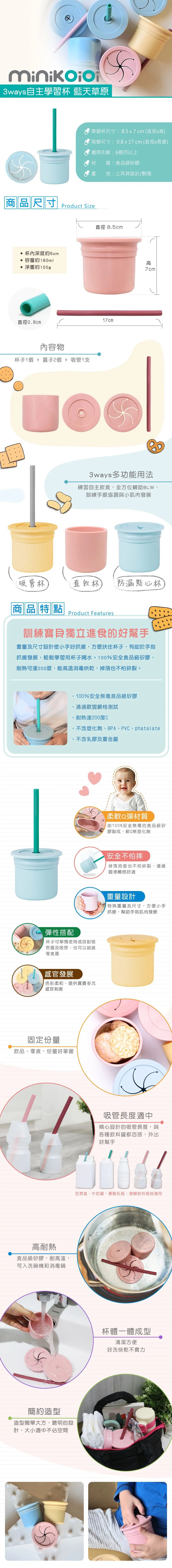 這款學習杯使用安全無毒食品級矽膠,媽咪儘管讓寶貝安心使用~