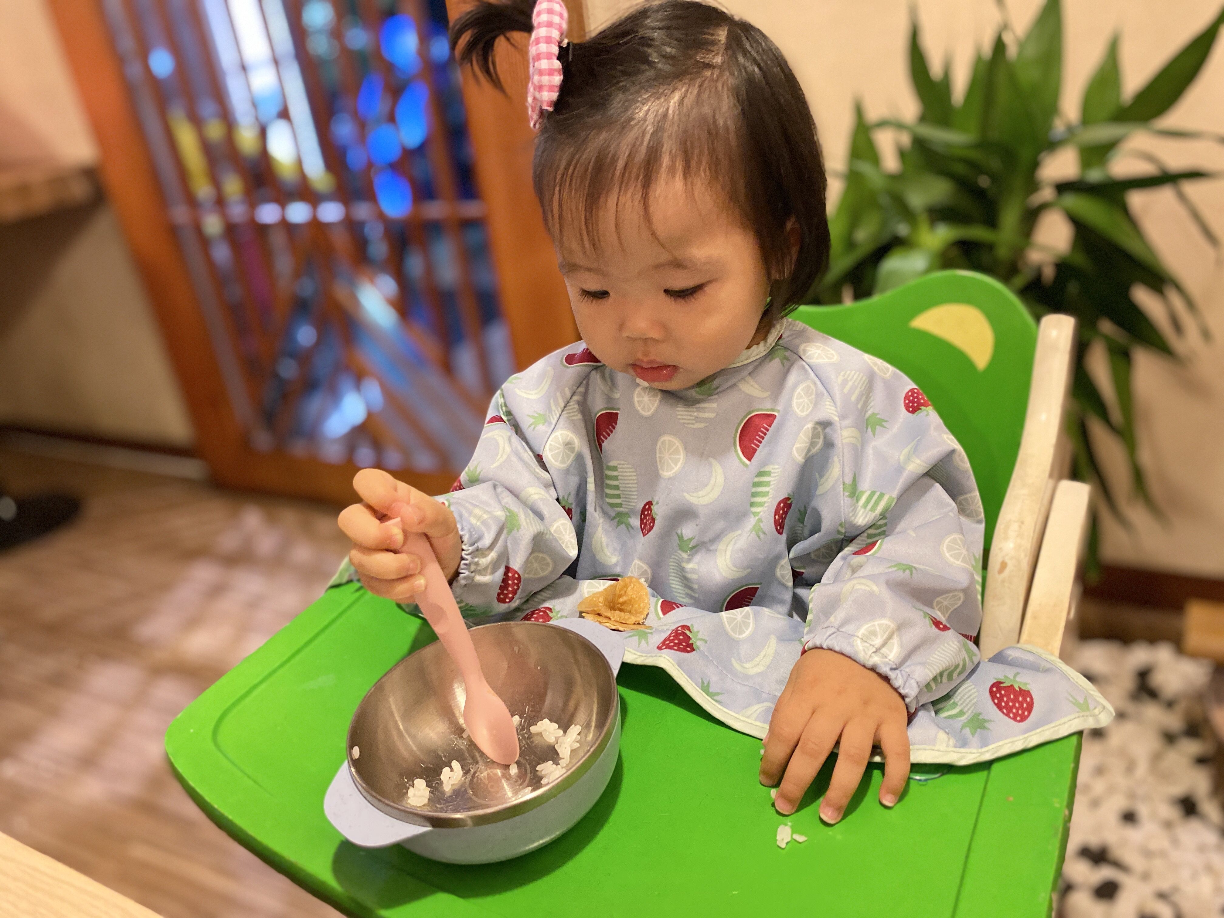 女兒在抓握湯匙時,因湯匙柄的設計有一個凹槽處,讓她能夠抓得更穩更好!加上材質相當安全,是讓寶寶學習使用餐具的好工具喔!