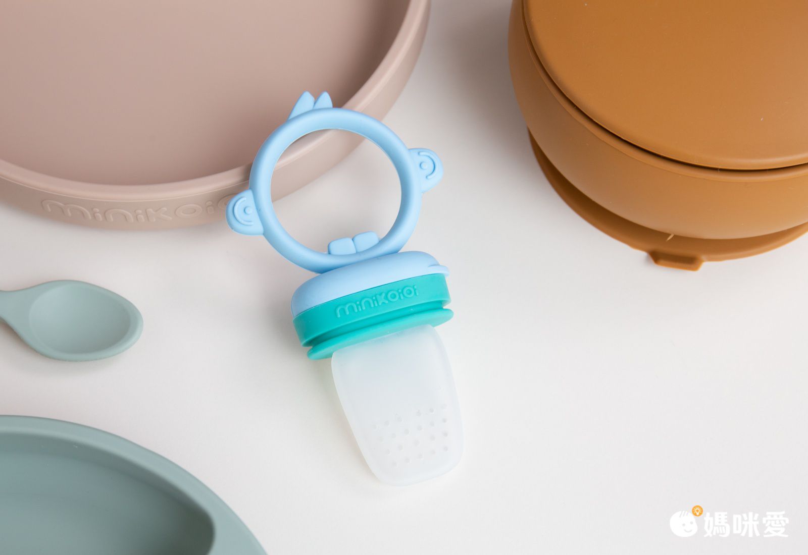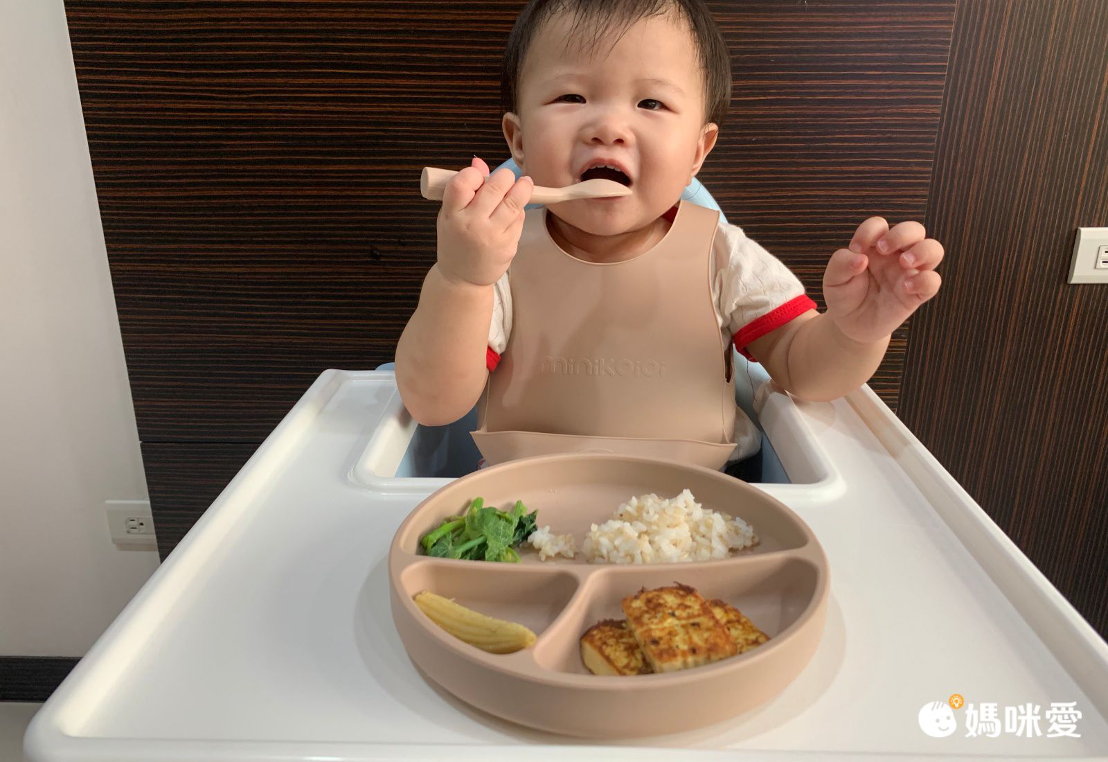 波波小妞開始學習自己吃飯囉!梨窩媽為她選擇的餐具是超美型超平價的「土耳其 minikoioi 」矽膠餐具最大的優點是柔軟有彈性,很適合孩子使用!耐熱達 200℃,可進微波爐、洗碗機、蒸氣消毒鍋,也可用電鍋加熱,非常方便。對於重視餐具質感的梨窩媽來說,土耳其 minikoioi 就是天菜!顏色很美膩,價格也很親民!