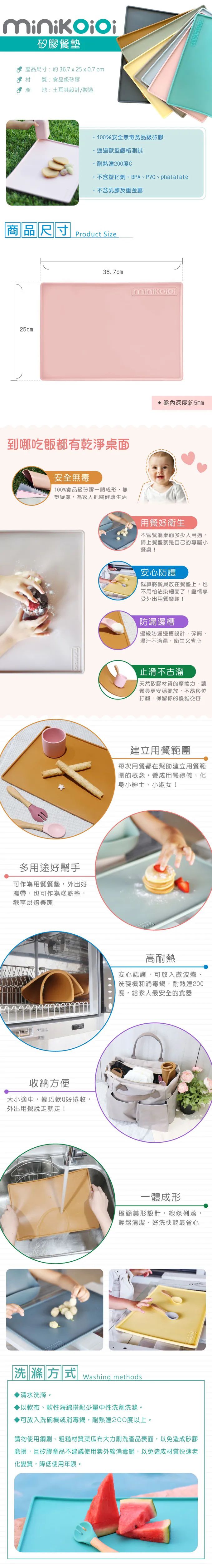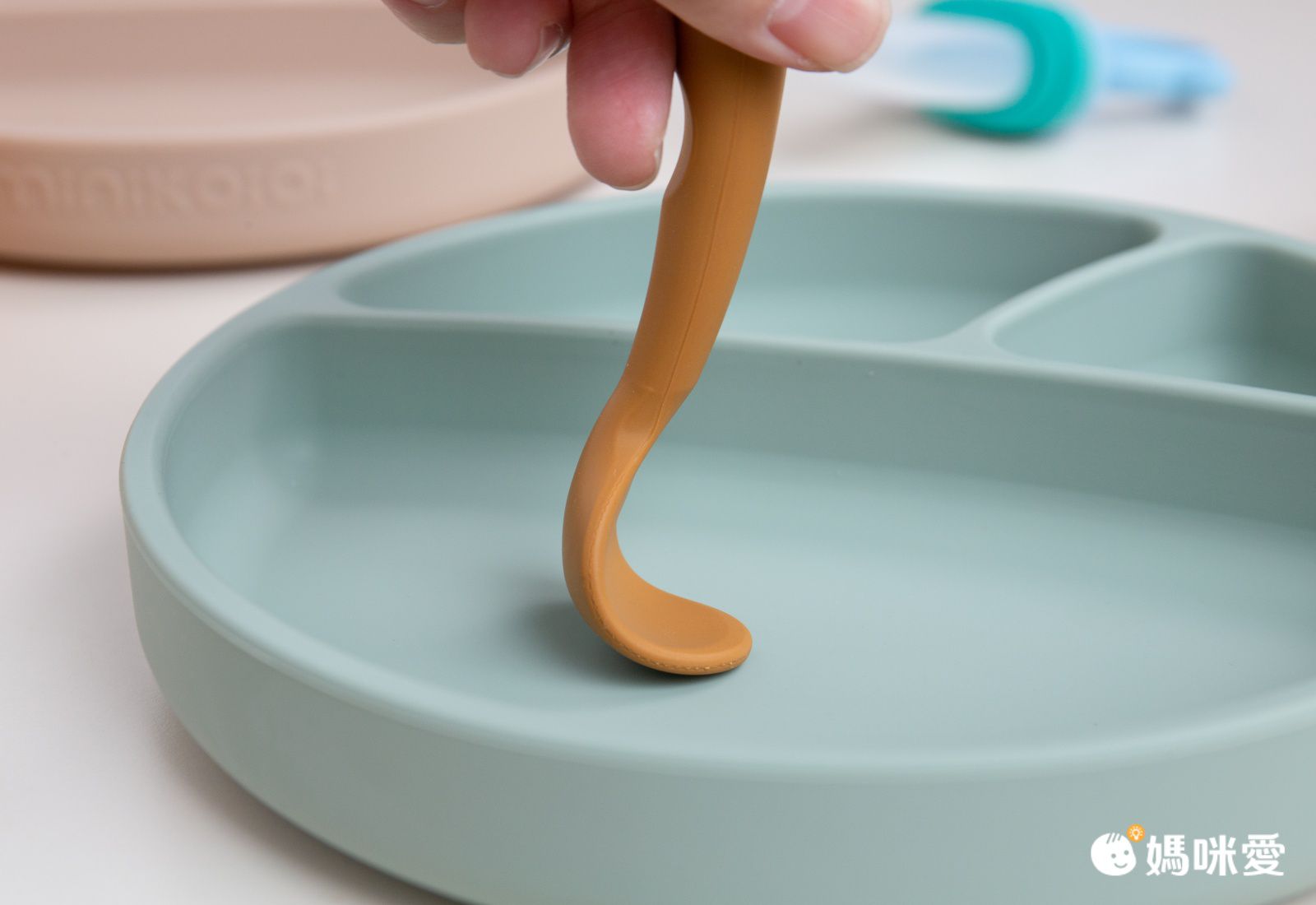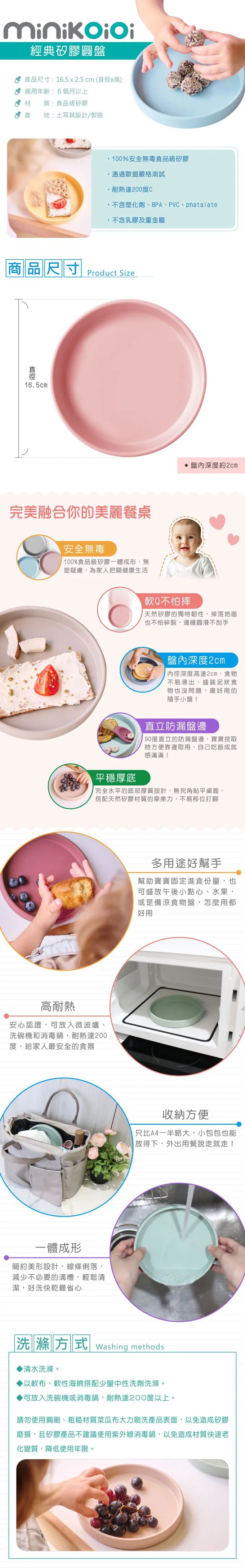 波波小妞初次使用 Minikoioi 餐盤,一用就愛上!梨窩媽很喜歡矽膠類的餐具,原因除了最基本的安全無毒,還有矽膠 Q 彈特性不怕掉落地面會碎裂導致受傷,也不怕小小孩玩弄餐碗時發出的敲碗聲太擾人~餐盤邊緣厚實圓滑,不會造成肌膚刮傷,矽膠耐熱 200 度,隔熱效果好,不怕小孩燙傷。通過歐盟 CE 認證、EN71 測試認可,所以可以放心讓寶寶使用。