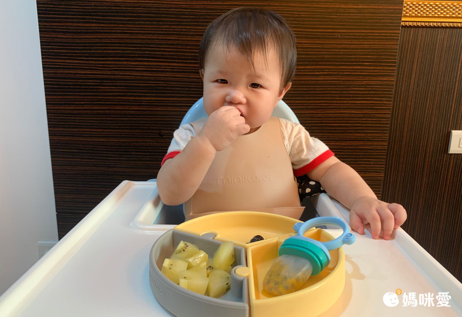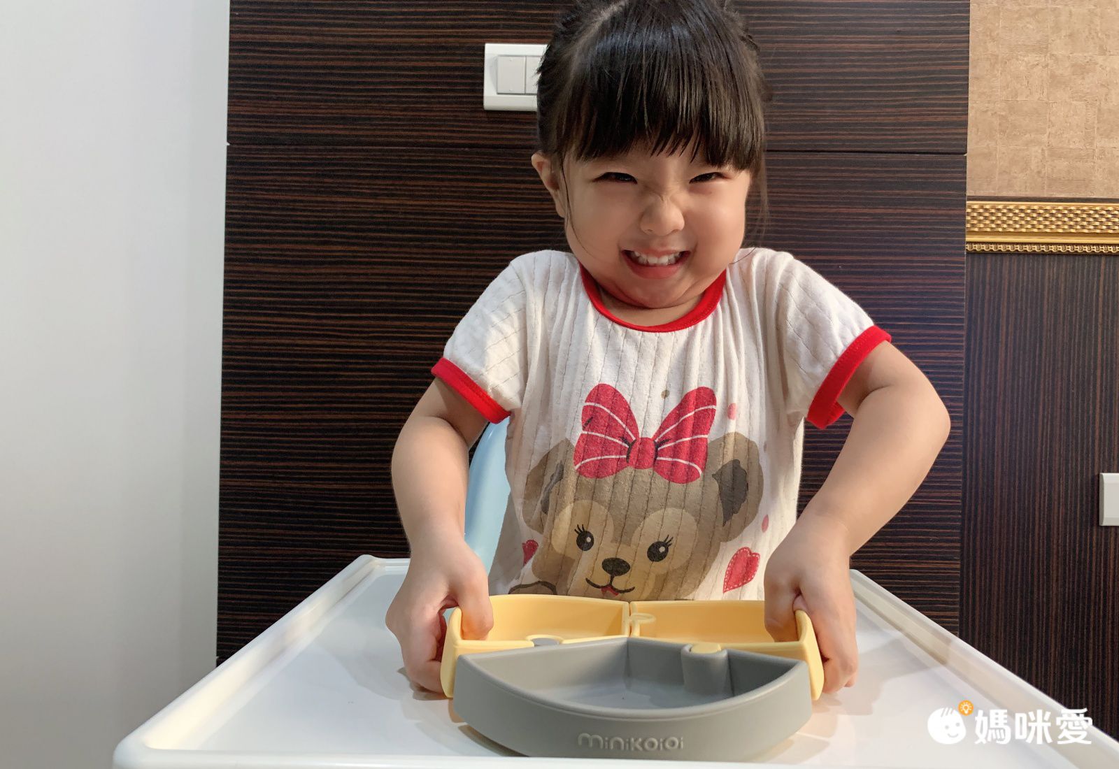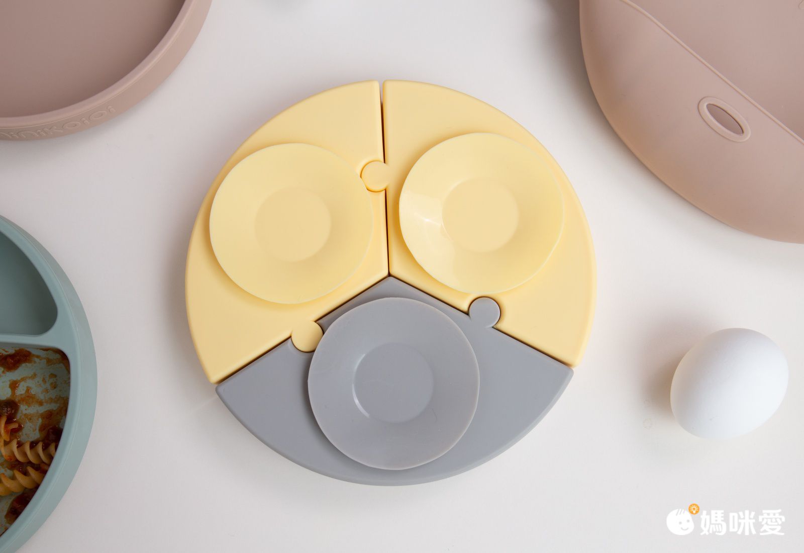 波波小妞初次使用 Minikoioi 餐盤,一用就愛上!梨窩媽很喜歡矽膠類的餐具,原因除了最基本的安全無毒,還有矽膠 Q 彈特性不怕掉落地面會碎裂導致受傷,也不怕小小孩玩弄餐碗時發出的敲碗聲太擾人~餐盤邊緣厚實圓滑,不會造成肌膚刮傷,矽膠耐熱 200 度,隔熱效果好,不怕小孩燙傷。通過歐盟 CE 認證、EN71 測試認可,所以可以放心讓寶寶使用。