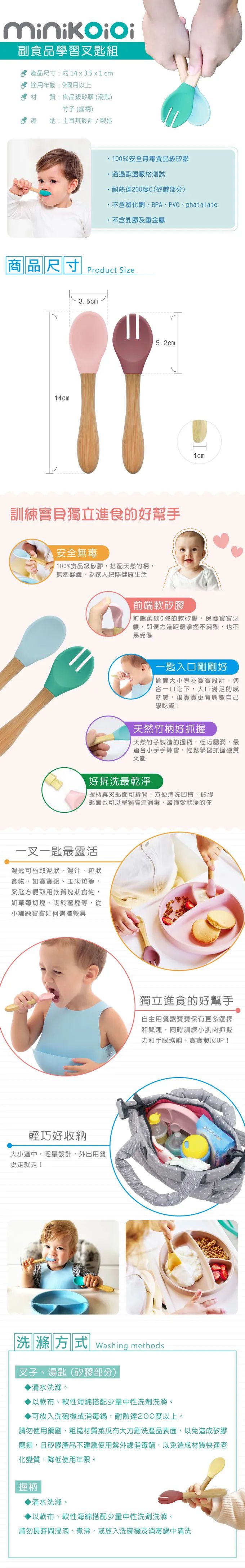 使用天然竹柄超好抓握~很適合剛開始學拿湯匙時使用!!而且前後是可以拆掉分別清洗的,在清潔上也不怕會殘留異物,讓餐具永遠保持乾淨清潔~~