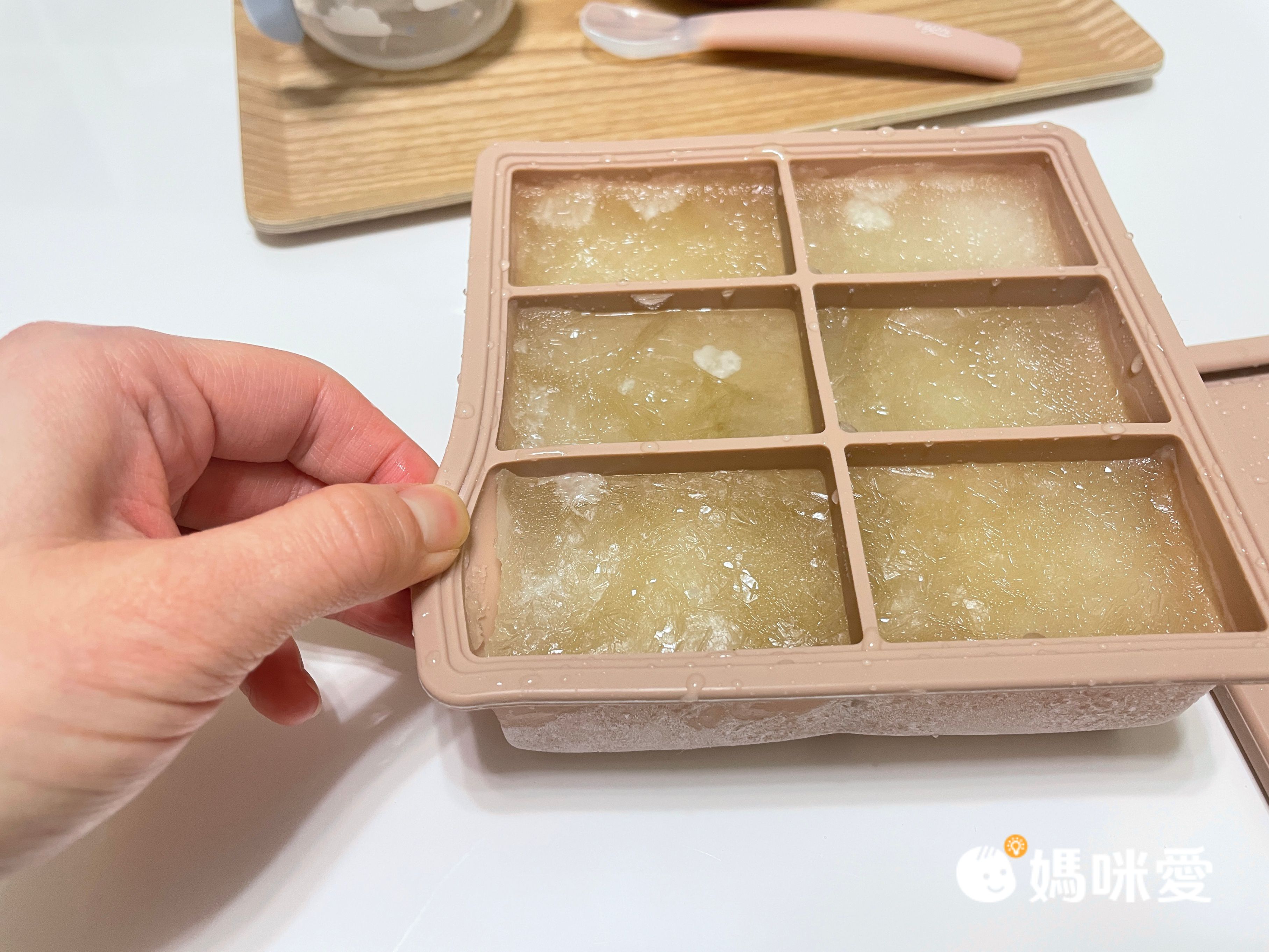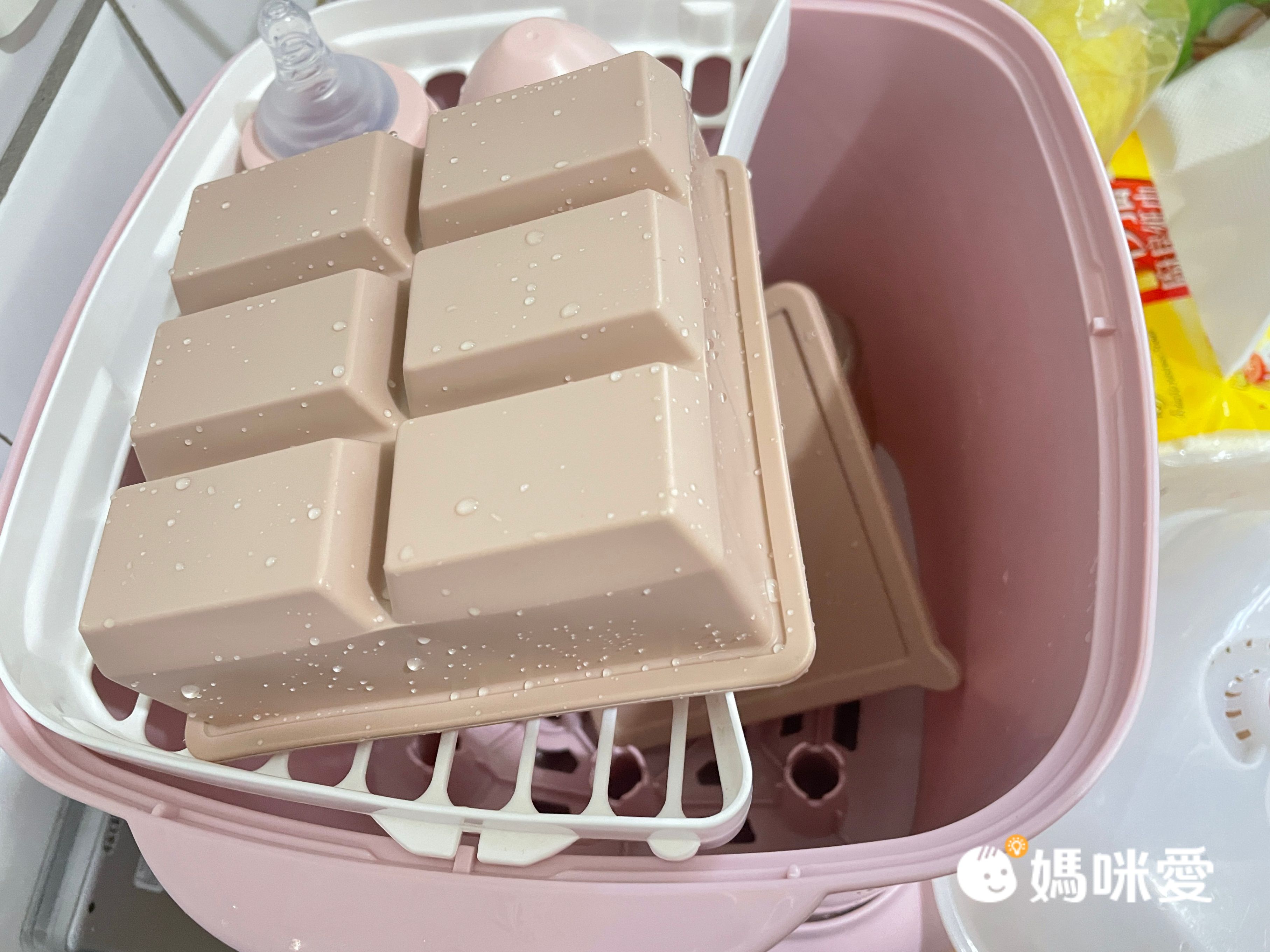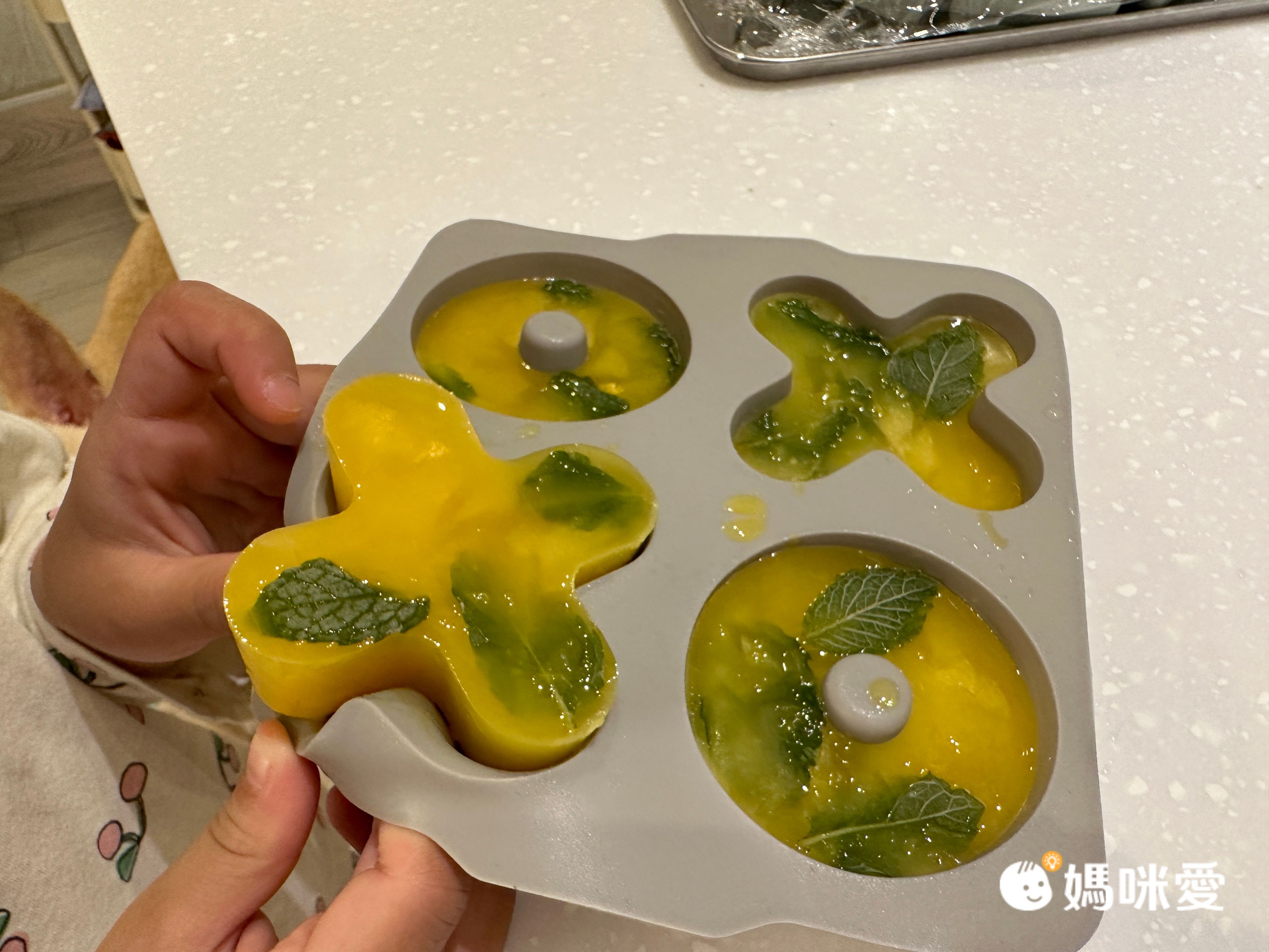 只需要冰在冰箱一個晚上就能取出,令編媽驚豔的是超!級!好!脫!模! 只需要稍微翻一下模具本身,裡面的果汁冰磚就滑出來啦